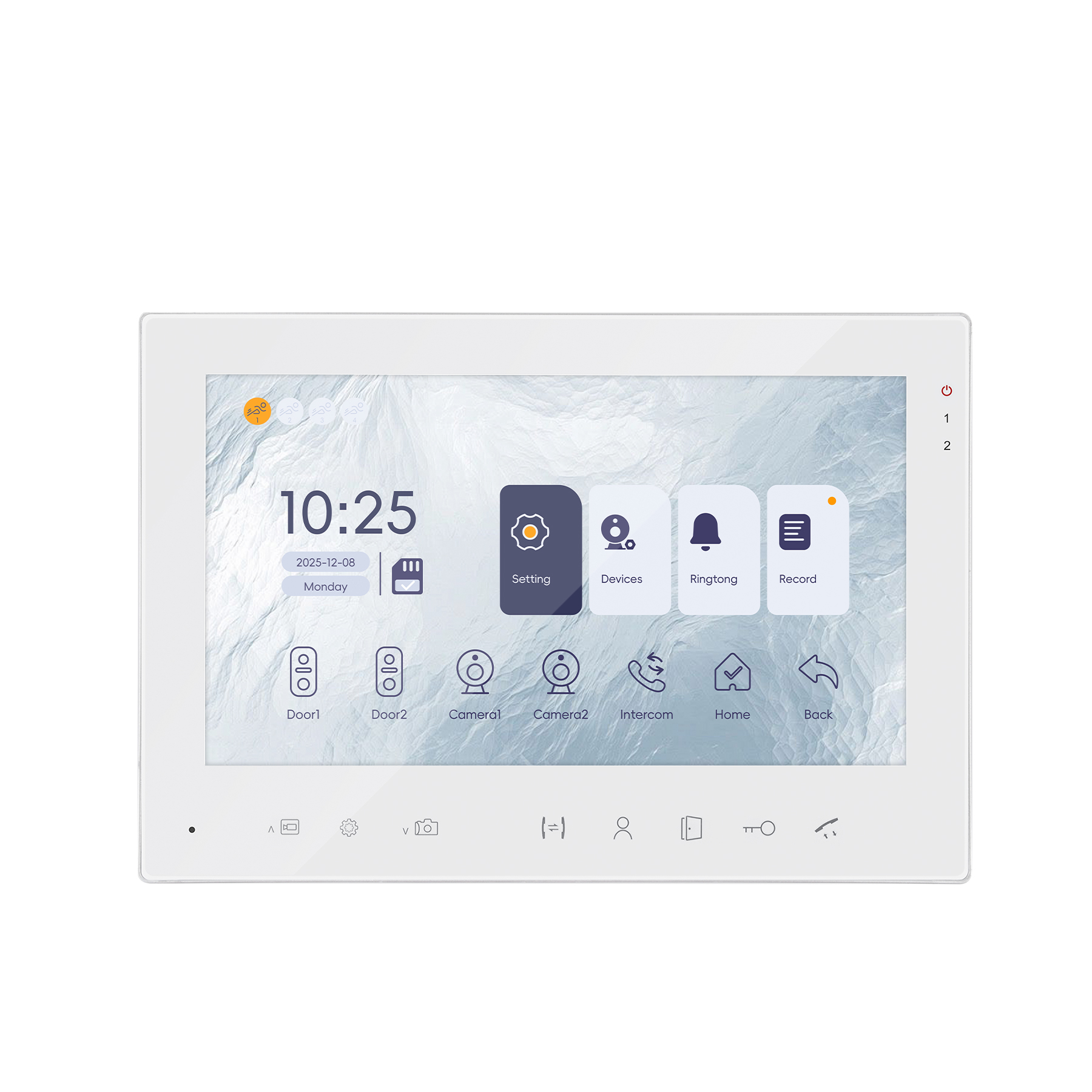 – Supports a maximum of 2 door stations, 2 CCTV cameras, and 6 indoor monitors.
