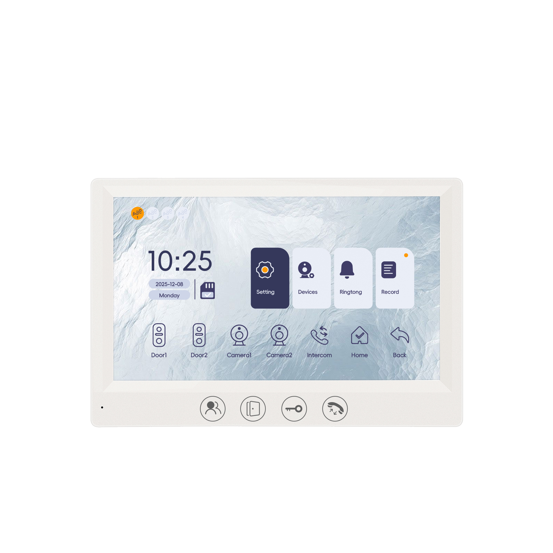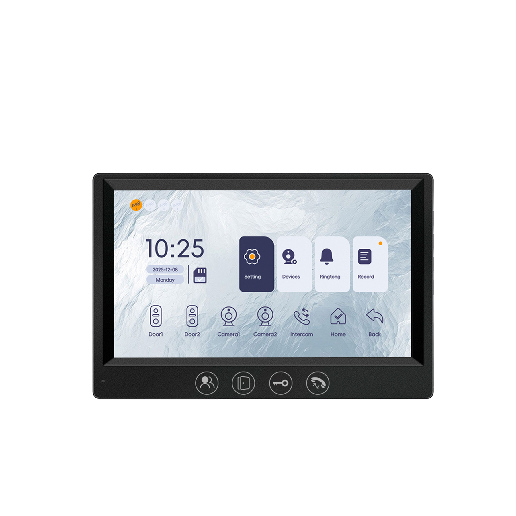 – Supports a maximum of 2 door stations, 2 CCTV cameras, and 6 indoor monitors.